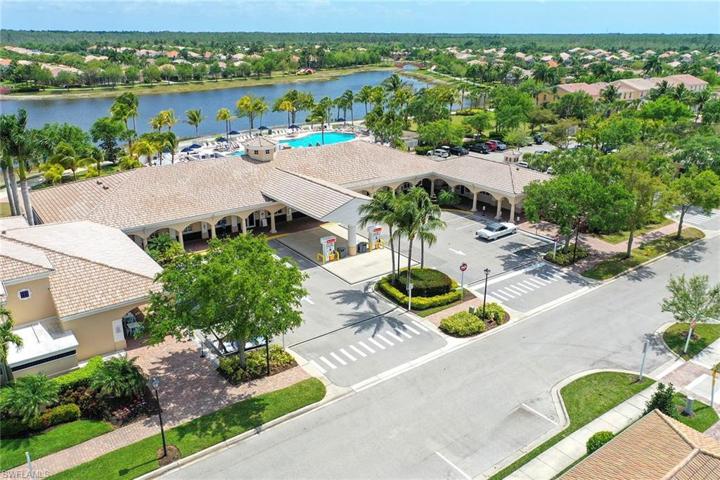 Rarely available expanded Carlyle model with new roof in 2022 and new air conditioner in 2022. This is a solid concrete, built solid home by DiVosta Homes. Low maintenance property with lots of tile and crown molding accents. The kitchen has stone counters, upgraded white cabinets with pullout drawers, stainless double oven, refrigerator and wine cooler. Custom bar cabinet added below kitchen peninsula. Additional lighting and ceiling fans make this home ready for you. Both guest baths have glass enclosure upgrades. All closets have built-in, customizable cabinetry. The kidney-shaped pool has a fountain and a keystone finish deck. The patio also has a large electric awning for additional shade. Owners added pavers around the home, had the garage doors reinforced and installed a whole-house surge protector. The large front porch has room to entertain, plus rolldown sunshades. Entry is screened with a double door. Conveniently located near the Town Center and front gate, residents enjoy numerous amenities such as a 20,000-square-foot clubhouse with activity rooms, dance floor, 24-hour fitness center, pickleball courts, tennis courts, a basketball court and a play area. There’s more than 20 miles of walking paths to enjoy here!