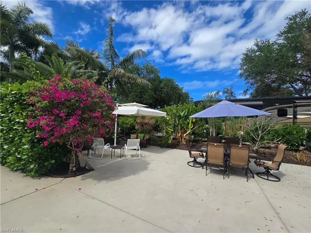 Exceptional Class A motorcoach lot in the highly sought-after Pelican Lake Motorcoach Resort. This oversized, off-lake back-in site features desirable southern exposure through the front windshield and offers over 5,100 square feet of extended outdoor living space. Beautifully landscaped with a variety of tropical plantings, the lot provides a private, shaded, and serene setting. The expanded concrete pad allows for generous outdoor entertaining, while raised garden beds and wrap-around awnings enhance both comfort and functionality. The property includes a fully finished 10×10 coach house equipped with a full bathroom with shower, washer and dryer, refrigerator, and sink, making it ideal for extended stays or hosting guests. Pelican Lake Motorcoach Resort is a gated luxury community offering a newly renovated clubhouse with seasonal social events, heated pool and spa, fitness center, and newly surfaced, lighted pickleball courts. Additional amenities include tiki huts, professionally maintained landscaping, on-site management, paved private roads and sidewalks, and high-speed internet included in quarterly dues. Ideally located just minutes from Naples and Marco Island beaches, dining, shopping, and entertainment, this is a great opportunity to own a private, well-appointed motorcoach lot in one of Southwest Florida’s premier resort communities.