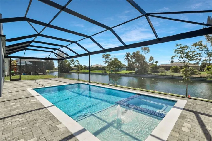 Welcome to this stunning modern waterfront luxury home featuring 4 bedrooms, 4 bathrooms, and a 3-car garage with over 2,100 sq ft of refined living space, ideally located in one of Cape Coral’s most desirable waterfront neighborhoods. Designed for comfort, efficiency, and style, the home showcases thick Spanish matte tile flooring throughout, a durable tile roof, and impact-resistant doors and windows, all complemented by abundant natural light and expansive water views of a wide canal with seawall. The open concept layout centers around a chef’s kitchen equipped with LG’s newest suite of smart appliances, a built-in microwave/oven combination, and Wi-Fi connectivity. Outdoor living shines on the expansive lanai featuring a fully equipped Florida outdoor kitchen with dual grill setups overlooking a private 14×28 heated saltwater pool, perfect for year-round enjoyment. Inside, elegant spa-inspired bathrooms include smart toilets, and the home also features a fully automated sprinkler system for added convenience. All city water and sewer assessments are paid in full, adding significant value, and the prime location offers peaceful waterfront living just minutes from shopping, dining, and everyday conveniences, making this thoughtfully designed property ideal as a full-time residence, vacation home, or luxury investment opportunity.