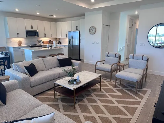 Short/Long-Term Rental in the prestige gated community of Villa Mar Bonita Beach! Conveniently situated 7 minutes to pristine white sand beaches of Bonita Beach! This stunning 2nd floor TURN-KEY FURNISHED unit features 3 LARGE bedrooms, 3.5 bathrooms and a 1 car garage with your own PRIVATE ELEVATOR. With over 1800 sq. ft. this home features a modern kitchen with white cabinets, stainless steel appliances, large quartz topped island; open concept family room with tray ceiling, led recessed lighting, impact windows and doors and so much more! Spacious primary bedroom features tray ceiling, walk-in closet, large en-suite bathroom with double vanity and large walk-in shower with upgraded wall tile and glass door. Guest will enjoy their private bedrooms located on the other end of the home with en-suite bathrooms plus powder room to ensure comfort and style. Outside, revel in the charming coastal architecture, complemented by a brick paver driveway and a standing seam metal roof. Villa Mar, a coveted gated community, offers an array of fabulous amenities, including a resort-style pool with lounge chairs and umbrellas, clubhouse, community room, exercise room, sidewalks, and underground utilities. Near shopping, dining, entertainment, Coconut Point, movie theaters, and 15 minutes from Lovers Key State Park. WALK TO SOME OF THE BEST BREAKFAST, BRUNCH AND DINNER RESTAURANTS IN TOWN!!