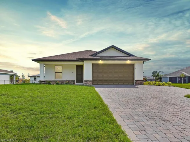 Welcome to the Pearl! Custom built by Douglas Brooke Homes. This New Construction home is due to be finished and ready for your family January 2024! NO HOA PAYMENT. The Pearl is a true open floor plan featuring views from the kitchen area to the great room, perfect for entertaining guests. This desirable floor plan also offers 3 beds, 2 baths, 2 car garage with a spacious lanai. Split bedrooms give the owner’s suite a full wing of the house highlighted with Dual sinks and massive walk in shower in the Ensuite. High end finishes include oversized extended paver driveway, huge island in the kitchen, real wood cabinets Mist coloring, granite countertops throughout the home, Light grey/brown wood plank flooring and stainless-steel appliances. Some luxury features include a video doorbell, a learning Nest thermostat, garage door with wi-fi enabled opener, and an automatic sprinkler system. If applicable, buyers may qualify for Closing Costs credits at closing. 6% rates for qualified buyers. Conveniently located to I-75, RSW, restaurants, shopping, hospitals and nightlife. This is a great opportunity, do not miss out on it!