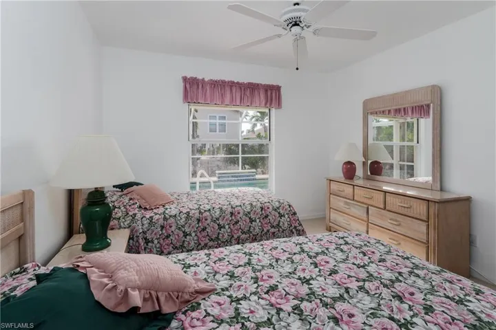 Location truly matters, and this delightful 3-bedroom, 2-bathroom home delivers on every front! Perfectly situated on an 80 x 110 ft lot in the heart of Marco Island, it’s minutes from Mackle Park, the YMCA, Racquet Club, and highly rated schools like Tommy Barfield Elementary and Marco Island Middle School. Inside, the layout offers a great room design with vaulted ceilings that enhance the bright and open atmosphere. The living and dining areas flow effortlessly, creating an ideal space for hosting friends or gathering with loved ones.
