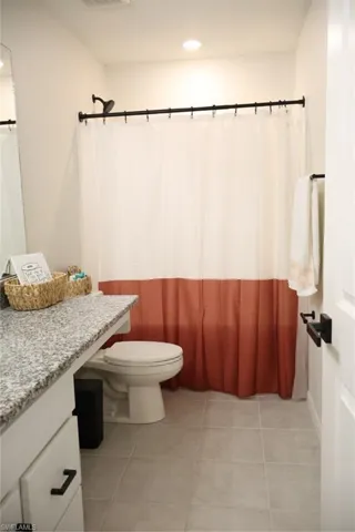 Step inside to an open-concept main living area featuring durable tile flooring and a functional layout. The kitchen is designed for both everyday living and entertaining, complete with granite countertops, recessed LED lighting, full-overlay cabinetry, and stainless-steel appliances.