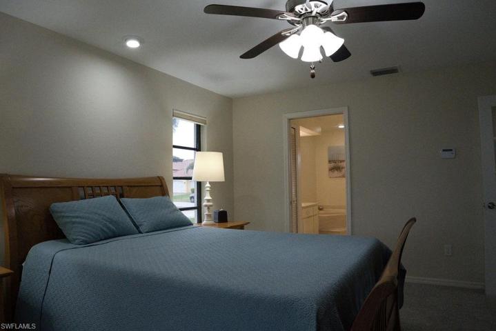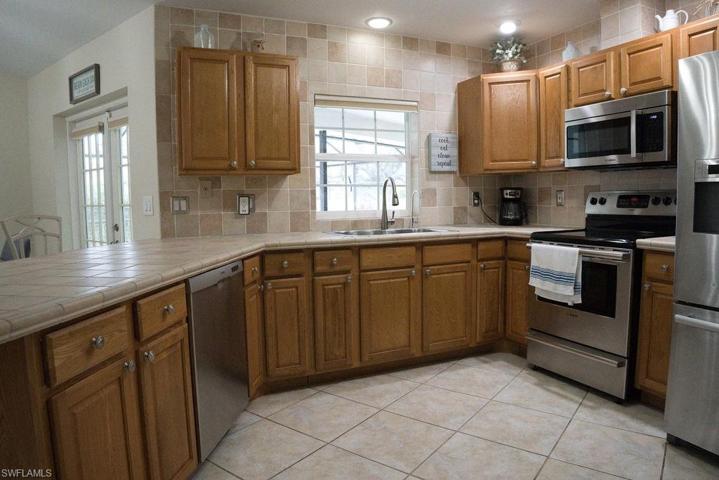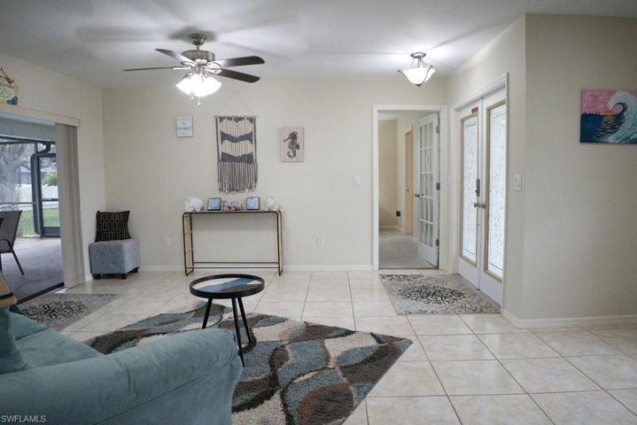 The layout seamlessly combines functionality with style, providing ample space for relaxation and entertainment. The formal living and dinning area welcomes you with an abundance of natural light, creating a warm and airy ambiance. Kitchen with SS appliances and ample counter space, is a chef’s delight. Enjoy family dinners in the adjoining family dining area, or step outside through sliding glass doors to the pool area. The master suite with an ensuite bathroom and a walk-in closet. Two additional bedrooms provide flexibility for guests, a home office, or a hobby room. The guest bathroom is thoughtfully designed for both convenience access to the pool area. The outdoor haven is the pool area which is a tropical paradise, surrounded by landscaping that enhances privacy, this is the perfect place to create lasting memories with family and friends. This home offers proximity to local amenities, shopping, and dining. Don’t miss the opportunity to make this your own piece of paradise in Cape Coral.