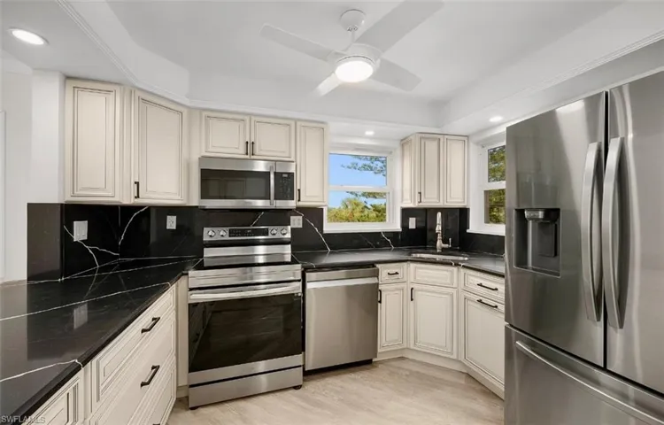 Must see END UNIT ….. Beautiful sunsets can be yours! Highly sought after, rarely available in Building 29, with an impressive view of the golf course! Centrally located between Venetian Village and world famous 5th Ave, High Point Country Club is just a short bike ride or walk to the beach. Enjoy 6 pools, bocce, tennis, pickleball, exercise room, and IMMEDIATE 2 person GOLF membership. The social calendar at this country club is booming, and you do not want to miss the fun. Seasonal restaurant open for both breakfast and dinner. Condo includes impact glass sliders and lanai screens so you get the best lanai enjoyment possible. New plantation shutters and solar shades are also included for extra privacy. Both bathrooms and the kitchen, including a custom pantry, were fully renovated in 2024! Condo includes 1 covered parking space in a prime location as well as access to guest parking. This condo is STUNNING and a MUST SEE.