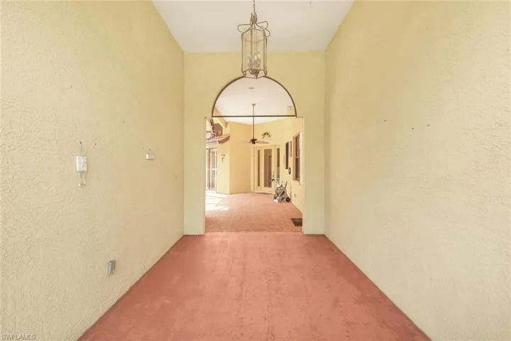 X Zone! (High Elevation) Old World charm meets timeless inspired Spanish-style villa tucked on over 1/2 of an acre, deep into the lush heart of Marco Island’s exclusive enclave—The Estates. This peaceful inland estate offers seclusion, character, and a rare opportunity to own at this size and price point in such a coveted location. With 3,076 SF of living space, four bedrooms (plus a flexible office/den), and three full baths, the home embraces space and scale with thoughtful elegance. At its center, a private courtyard with a heated pool evokes the ambiance of a Mediterranean villa, blending indoor and outdoor living. Walls of glass doors and oversized windows flood the interior with natural light. Soaring 12-foot ceilings, crown moldings, and classic terrazzo floors lend warmth and refinement throughout. The layout includes a large great room, family room, formal dining, and an inviting foyer that welcomes guests into a home designed for entertaining or retreat. A detached guest casita offers two private bedrooms, a full bath, and its own HVAC (2022), making it ideal for guests, a studio, or wellness space—and has also served as a successful short-term rental. The main house’s primary suite is privately tucked at the rear with dual walk-in closets and direct access to both the courtyard and backyard. A split-bedroom plan ensures privacy for all. Recent upgrades include interior paint (2023), a new electric pool heater (2022), a new dishwasher, and luxurious bathroom fixtures. A full-width screened lanai spans the length of the home, offering a serene space for dining or lounging beneath mature mango, starfruit, and papaya trees. The oversized 3-car garage provides ample room for storage, bikes, or a second fridge, while the deep setback from the road offers total privacy and tranquility. With its timeless appeal, tranquil setting, and generous footprint, this home represents a rare opportunity to personalize one of The Estates’ most spacious and character-rich properties under $2M.