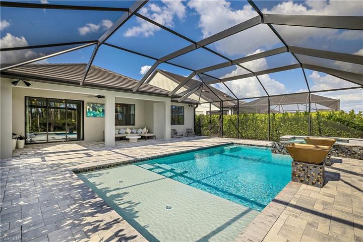 Immaculate 4 bedroom, 2 bathroom single-family pool home located in Pulte Homes development of Westbrook! Westbrook is a newer development consisting of just 330 homes located in the Three Oaks Corridor of Fort Myers. The 105-acre community features seven lakes and more than 5-acres of natural preserve. This popular Summerwood floor plan sits on a prime private lot overlooking a wooded preserve and a custom pool and spa complete with panoramic screen cage, LED lighting and is all WIFI controlled. The wide open great room split plan offers additional transom windows plus large windows throughout the home allow for tons of natural light. Interior upgrades include: designer window treatments, island kitchen, upgraded bathrooms with glass shower, laundry cabinetry, wood-look tiled main areas and wood flooring in bedrooms. The lanai offers spacious covered area perfect for enjoying the private views and ideal southern exposure. Westbrook is pet -friendly, allows fences and is conveniently located West of 75 off Three Oaks Parkway south of Alico Road. Amenities include resort-style pool and spa, community room, fitness center, tot lot, and more for a very low fee with NO CDD!