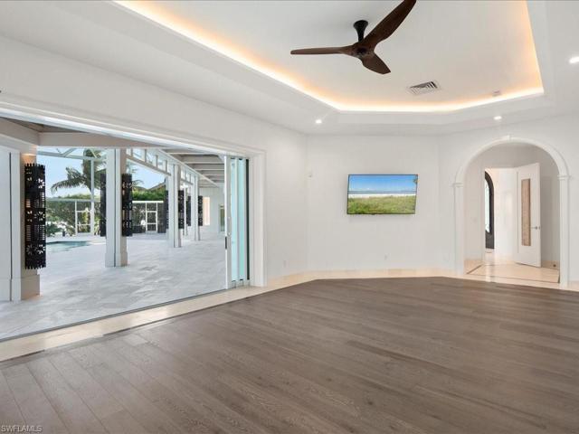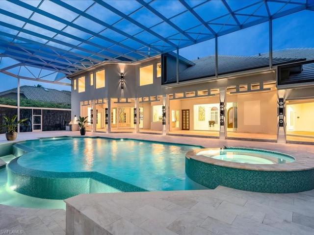 Experience idyllic waterfront living in this extraordinary Marco Island home, impeccably and entirely remodeled to offer the luxurious lifestyle you crave. A series of high-end finishes have shaped the gorgeous interior, including exotic woods, gleaming marble, and custom millwork and paneling that lend an atmosphere of refined elegance. Bespoke built-ins, plantation-shuttered windows, and stylized ceilings with stunning lighting are just a few of the exquisite details that will capture your attention. Admire the magnificent views as you work your culinary magic in the chef’s kitchen, fitted with Viking stainless appliances, abundant white cabinetry, and sleek quartz countertops. Southern exposure and an impressive 106 ft of water frontage ensure unobstructed panoramas of Caxambas Bay as you relax on the large screened-in lanai or take a refreshing dip in the pool and spa. With a newly constructed dock, boating and fishing enthusiasts will be just a short ride from the gulf. For your convenience, this remarkable residence has integrated Control4 home automation. A fabulous location means shopping, dining, parks, and beaches are nearby. Come take a tour before it’s gone for good.