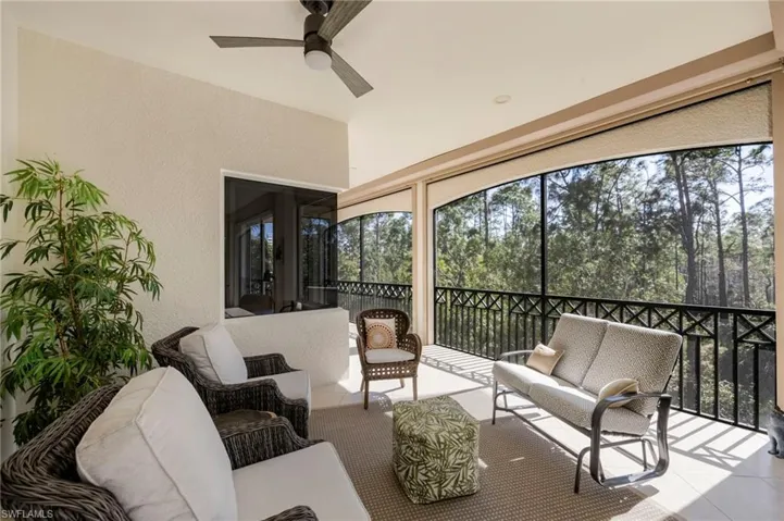 Penthouse perfection – Just minutes from the Gulf! Located just three miles from the sugar-sand beaches of the Gulf and moments from Naples’ world-class shopping and dining, this third-floor penthouse offers the ultimate blend of privacy, luxury, and panoramic beauty. Completely remodeled in 2020 and positioned in one of the most private settings within Castillo at Tiburon, this exceptional property lives like a single-family retreat in the sky. Offering over 2,500 square feet, the residence features three spacious bedrooms, two beautifully renovated baths, a two-car garage, and two expansive terraces designed to capture breathtaking views from every angle. The front terrace showcases sweeping golf course vistas and tranquil fountain views, while the oversized rear lanai and primary suite overlook a peaceful preserve setting, providing unmatched serenity and privacy. Inside, luxury wide-plank flooring flows seamlessly throughout the entire residence, setting the tone for the refined interior. The gourmet kitchen is a true showpiece, thoughtfully redesigned with natural gas cooking, a beautiful quartz island with breakfast bar, custom cabinetry, designer lighting, and premium Bosch appliances — perfectly suited for both everyday living and elegant entertaining. The spa-inspired primary bath rivals five-star accommodations, featuring a freestanding soaking tub, seamless glass walk-in shower, new custom cabinetry, quartz countertops, and sophisticated lighting. Every detail throughout the home reflects quality craftsmanship and timeless design.