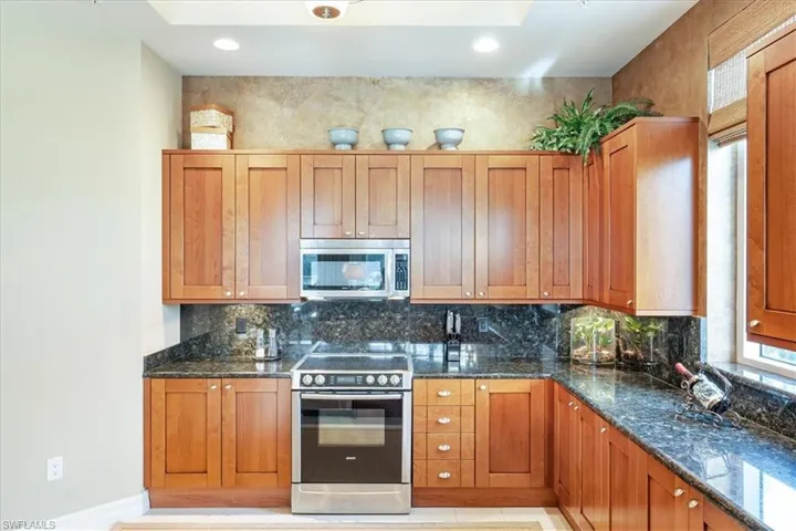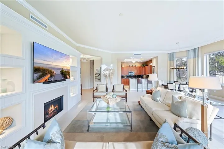 One of a Kind Views! This 3-bedroom, 3.5-bathroom first floor high-rise end unit boasts possibly the best golf views, overlooking holes 9 & 18. The wraparound screened balcony provides a front-row seat to golfers finishing on the 18th and enjoy the same stunning views from the master suite & great room. Guests are treated to equally impressive scenery on the eastside balcony, each suite featuring its own private bathroom. Formerly the builder’s model, this home combines the allure of a high-rise with the convenience of a first-floor location, eliminating the need for elevators. With ceilings soaring over 10 feet, the living spaces feel like an estate home, accentuated by a spacious kitchen w/ample cabinetry & granite countertops. Custom built-ins enhance the elegance of the great room, making this residence a beautiful & functional haven. Jasmine Bay offers private elevator, guest suites, pool/spa, gym & game rooms. West Bay Club amenities include private beach club, restaurants, resort-style pool, fitness center, dog park, River Park w/kayaks, boat launch & storage, tennis, pickle ball, Clubhouse & 18-hole Pete & PB Dye designed golf course.
