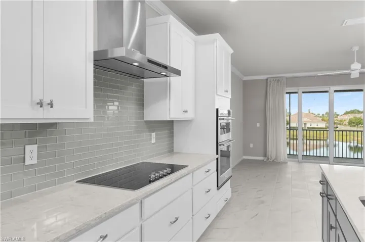 The main living areas are enhanced with marble-style white and gray ceramic tiles ,modern luxury vinyl flooring runs through the bedrooms and closets, all complemented by crown moldings, recessed lighting and a sophisticated wall color palette adding a refined touch to the space.