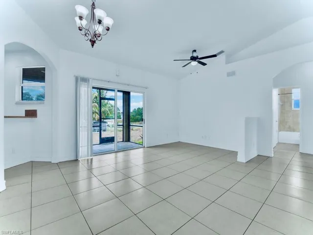 Welcome to this spacious 3/2 home nestled on a corner of a quiet dead-end street in the highly desirable SW side just minutes from Fort Myers and all major amenities. It has been freshly painted & spotlights a (2023) DIMENSIONAL shingle roof and a (2024) HVAC system for peace of mind. The open great room showcases GRAND elevations with high & cathedral ceilings, creating a bright, airy living space. The kitchen is equipped with newer stainless steel appliances & an awarding breakfast bar, while the primary suite offers dual sinks, dual closets, and a walk-in shower. Additional highlights include newer fixtures, a screened back patio, newer water softener system, and desirable high-speed internet availability. A well-maintained home in a quiet setting with easy access to everything Southwest Florida has to offer. Schedule a showing today!