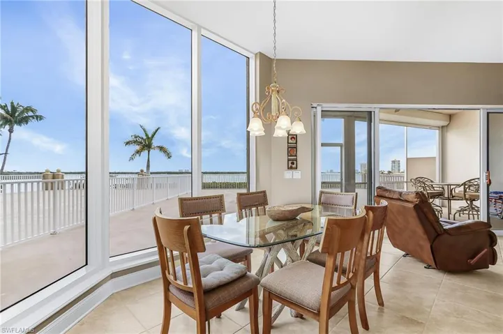 Spectacular views from this 3 bed+den/3 bath condo at Dolphin Pointe in the luxurious community of Waterside at Bay Beach! This 2100 sq foot condo features soaring 11 foot ceilings!! The open kitchen and living room overlooks the expansive panoramic views of Estero Bay. Beautiful finishes include granite counter tops, stainless appliances, tile back splash, tile flooring and tray ceiling. The 1300 sq ft extended private terrace is a unique bonus and must see! Enjoy watching dolphins, manatees and boating life with panoramic water views. Perfect for entertaining guests with 2 guest rooms with ensuite bathrooms. Feel rest assured with impact windows and doors and electric hurricane shutters. Assigned covered parking space & climate controlled storage room included. Building amenities include 2 guest suites, pool/hot tub, BBQ grills, social room, fitness center, tennis courts and fishing pier. Additional community amenities include deeded beach access, pickle ball, tennis courts, bocce ball, chipping greens, driving cage and walking paths. Located South Island on Fort Myers Beach close to Santini Shopping Plaza, Restaurants & Marina and a quick exit via the South Bridge to airport, Estero, Bonita Springs and Naples. Boat docks available for purchase. Call today to find out more information.