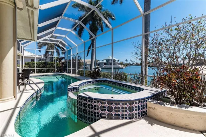 It’s all about amazing water views from this lovely direct-access home with southern exposure. Open wide water and converging waterway views, endless boating and kayaking opportunities, paddle with the manatee and dolphins. Boat dock with 10,000-pound single kayak lift. The three-bedroom, 3.5-bath layout affords ample space for visiting family friends. Soaring ceilings. Open kitchen affords the family chef amazing pool and water views while preparing meals. Make the most of Florida living in the large screened lanai with entertaining area, pool and spa while enjoying the wonderful water views. Most rooms offer fantastic water views. Offered furnished. New roof 2019, new air conditioner 2025, new water heater 2024 and newer appliances. Offered furnished. Quick direct access, no bridge, to the Marco River and Gulf of Mexico. An exceptional location with exceptional water views!