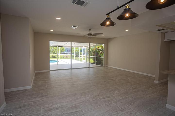 Beautifully renovated 3 bed, 3 bath, 1 car attached side load garage pool home is ready for a new owner! Hurricane Ian impacted this property, however, the home has been remediated (see updates sheet in attachments). Brand New tile floors thoughout including the pool bath, base trim, doors, textured walls & ceilings w/new interior paint throughout, Georgous kitchen w/New stainless appliances, Granite countertops, tile backsplash, Cabinets w/under lighting, tray ceiling w/lighting & breakfast bar w/recessed lights, Master bath was gutted and configured & includes dual sinks, tiled shower w/rain head & separate toilet area. All baths have brand new vanities and hardware. New lights, fans, fixtures, outlets, switches & smoke detectors throughout. Laundry room added w/laundry tub. Screened lanai w/all new screens, cage prepped & painted includes an inground pool & pool bath w/shower. Backyard is completely fenced. All New landscaping. Exterior has been power washed & freshly painted. New 2021, AC New 2020. Great SE Cape location, just minutes to the Cape Coral Yacht Club, downtown Cape with Dining, shopping, entertainment and so much more! Come check out this beautiful pool home today!