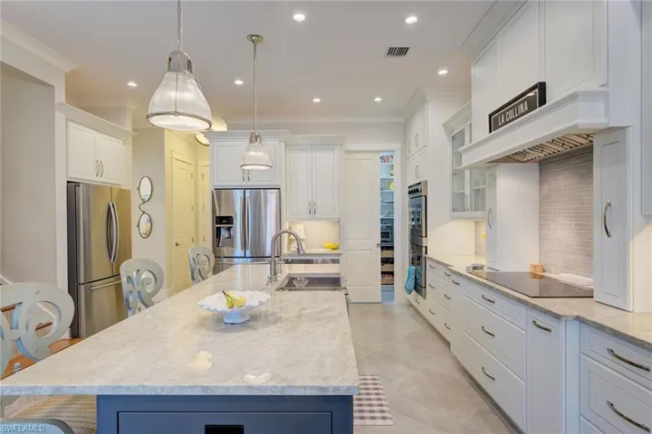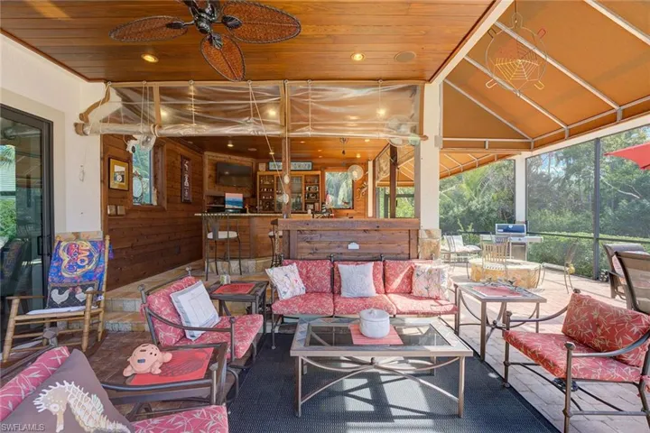In prestigious estates area of Marco, this incredible estate home was completely renovated in 2017. This house boasts over 3,200 square feet under air with a total of 6,127 square feet. Beautiful two-story home with highly sought-after southwest views! Five bedrooms, four baths with workout room, sitting room and great room. Volume ceilings throughout. Stunning new kitchen with gourmet appliances, quartzite countertops and huge walk- in panty would delight any chef. Great room boasts stunning fireplace open to dining area. Breathtaking bamboo staircase leads to upstairs bedroom area and workout room, all overlooking incredible pool area. Primary bedroom has beautiful wood ceilings and stunning primary bath. Upstairs terrace overlooking vast estate pool area with forever views. This stunning home focuses around the huge pool area complete with an incredible cabana and bar area to enjoy the great Marco Island lifestyle. Huge 3 car garage and recently added generator and propane tank. Don’t miss this beautiful one-of-a-kind home, built for the entire family and entertaining at its finest.
