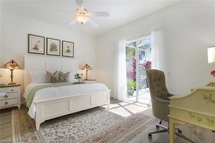 Welcome to Village Walk of Bonita Springs! Extraordinary lake view Oakmont model being sold furnished with tremendous upgrades and a custom pool. The home features three bedrooms and a large den, soaring ceilings and an open floor plan. The baths have been renovated, the kitchen has sleek new stainless steel appliances, and the home has fresh interior and exterior paint. There is new luxury vinyl plank flooring in the bedrooms and the den, and the main living area has meticulously maintained ceramic tile. The seller added top-quality plantation shutters and Hunter Douglas shades throughout the home. Upgraded hurricane protection includes new accordion shutters on the windows and sliders and storm smart hurricane screens on the lanai. The roof is new in 2019, there is a new AC, a newer water heater, and a new water filtration system. Outdoors, enjoy sparkling sunrise views from the lanai which is decorated with beautiful oversize ceramic pots complete with tropical plants and an Italian fountain. The resort-style community of Village Walk of Bonita Springs is just minutes away from Naples, Fort Myers, and stunning beaches, and is a haven that offers a paradise like no other. The wealth of amenities within the secure guard-manned gates includes a gas station, car wash, tennis, pickleball and basketball courts, a playground, fitness center, pools, restaurants, a beauty salon, a full-service salon – and more. Looking to socialize? The Lifestyle Director keeps residents engaged with clubs, card games, and events ranging from bingo and line-dancing to car shows and holiday parades. Looking for easy living? In this neighborhood, the hassles of maintenance melt away since the homeowner’s association takes care of your lawn, irrigation, internet, and cable TV. Embrace the Village Walk lifestyle — where luxury meets leisure, and community comes alive!
