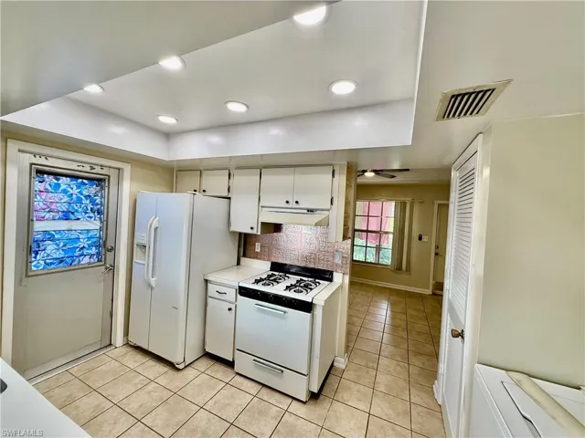 Affordable 3 bedroom 2 bath, NO AGE RESRICTIONS HERE- PETS OK, NEW DIMENSIONAL ROOF IN 2018, NEW SQUARE D ELECTRICAL PANEL BOX IN 2025, NEW WATER HEATER IN 2017, BRAND NEW RHEEM CENTRAL HEAT AND AIR BEING INSTALLED PRIOR TO CLOSING. freshly painted interior in 2025, large 3 BEDROOM addition in the rear of the unit with a walk in closet and separate entrance, screened front porch, LUXURY VINYL PLANK FLOORS WITH CERAMIC TILE FLOORS, vaulted ceilings in the living room, large formal dining room with built in cabinets, newer vanities in the bathrooms, covered carport parking with small storage room off of the carport, walking distance to stores and bus stop, low monthly maintenance fee of $70 per month includes grass cutting, indoor laundry area with full size washer and dryer off of the kitchen, NO FLOOD INSURANCE REQUIRED. LEHIGH IS THE HIGHEST ELEVATION IN LEE COUNTY.