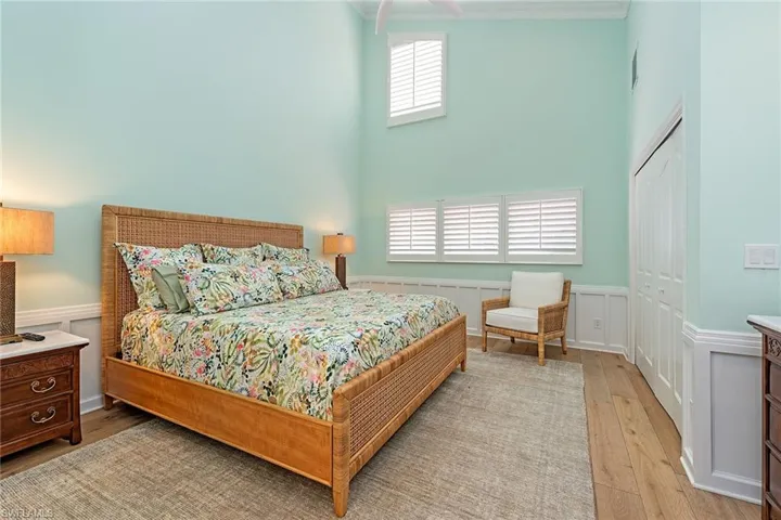 This charming three-bedroom, three-and-a-half bath Villa Mare presents an exceptional opportunity to enjoy as is or continue renovating in your way. The second-floor bedrooms and baths have been beautifully renovated in soft modern colors with wood floors in both bedrooms. Now the main level is up to you with soaring ceilings, a sunken living room, fireplace, floating stairs, balconies and open dining area to inspire! Never miss a sunset over the Gulf from the second-floor sun deck! Wake up to the Gulf nearby and enjoy a visit on the Park Shore Beach Promenade. This villa’s kitchen and family room with balcony overlook a garden courtyard that is accessible from the newly renovated ground-floor family/activity room. This light-filled room features new large tiled floors with glass walls and a door to an outside patio. Nearby, an arbor covered with cascading Bougainvillea carry you to a charming community pool area.
