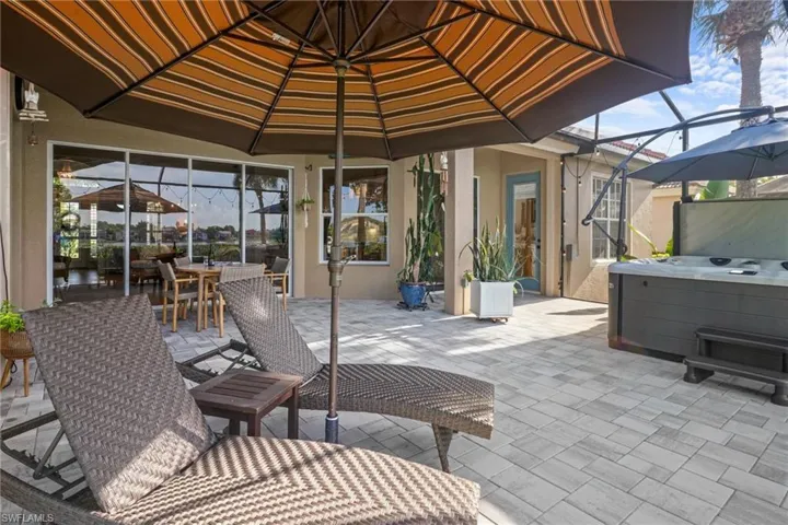 This is an “estate” home in “Aster Place” section of Emerson Square (larger lots and homes). SPECTACULAR WATER VIEW and Southern exposure!! 4 Bedrooms, 3 full baths, great room, formal dining room, all rooms tiled, completely remodeled new kitchen, new granite and new appliances, new A/C Feb. 2025, newer interior paint and exterior paint, newer roof (2023). Custom Spa Screened Enclosure Features Michael Phelps Legend LSX 800 Master Spa with dream lighting and spa umbrella all with lake view (see Virtual Tour #2); ALSO, Community Pool and Fitness Center, PLUS 3 car garage (extra deep) with beautiful paver driveway and built-in storage in garage! PLUS gorgeous waterfront view PLUS gated community! High ceilings in every room, 8′ sliding glass doors, tile roof, curb appeal, shutters (manual) except electric on lanai and front door, 2 closets in Master Bedroom (1 is walk-in), split plan with Master Bedroom with huge bathroom ensuite on one side of house and three bedrooms, two additional full bathrooms on the opposite side, Spa enclosure has access to one bathroom and the other two bedrooms share a bath (Jack & Jill)! Gorgeous home, very “inviting”, a great place to live! Plenty of room if a private pool is desired! Whole-Home generator hook-up stays but generator does not convey.