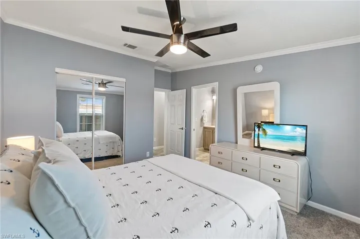 Welcome to your dream home in the desirable Enchanting Shores community, a charming 55+ neighborhood in Naples, FL with direct Gulf access and a brand new boat dock! This turn-key, fully-furnished, 2019-built home offers a bright, airy floor plan with vaulted ceilings, impact glass windows, and modern finishes throughout. The open-concept living area is perfect for entertaining, with sweeping views of the water and easy access to spacious outdoor areas including a double carport and shed. The 3-bedroom, 2-bathroom layout features a luxurious master suite with an oversized walk-in closet and ensuite bath, while the guest bedroom enjoys its own ensuite full bathroom. With laminate flooring, 2019 appliances, and plenty of storage – including a large outdoor shed with electricity – this home is truly move-in ready. The elevated design provides storm protection, and the new paved path leads you directly to your private, spacious boat dock, where you can launch your boat or watercraft for a 20-minute ride to the Gulf. Enchanting Shores is an active adult (over 55), pet-free Co-Op community that offers a wide range of fun activities and events for residents. Enjoy games like shuffleboard, cards, bocce, pickleball, and tennis, or join in on fitness classes, bingo, arts &c rafts or one of the events on the packed social calendar. Special events throughout the season include pancake breakfasts, dances, musical shows, potluck suppers, and ladies luncheons, creating a friendly and lively atmosphere for all. Enchanting Shores also offers a community pool and event space. With close proximity to shopping, dining, and Naples’ beautiful beaches, this home is perfectly positioned for both relaxation and recreation. Whether you’re boating to Keewaydin Island or simply enjoying the community’s amenities, this home offers the perfect blend of convenience, comfort, and luxury. Don’t miss your opportunity to make this turn-key beauty your own!