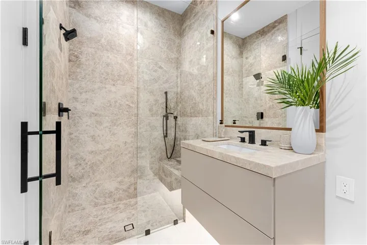 Brand new 2025 home! Bring all offers Stoff Cooney Modern Masterpiece: A Trophy of Timeless Elegance Located just one mile from Naples’ renowned 5th Avenue and 1.8 miles from pristine Gulf beaches, this architectural marvel boosting sophisticated luxury by star designer Tina Twigger sets a new standard for luxury living. With nearly 200 feet of direct Oyster Bay frontage, the property offers an unrivaled waterfront lifestyle, complete with the opportunity to build multiple docks and a nearly 60 ft existing dock, making it a dream for boating enthusiasts. Spanning almost 4,000 sq. ft. of interior space and over 7,000 sq. ft. of total living area, the home features five spacious bedrooms, five full baths, two half baths, and an ergonomic office. At its heart, a 2,500 sq. ft. wrap-around sun terrace seamlessly blends indoor and outdoor living spaces, showcasing breathtaking panoramic water views. Nicknamed the “Modern Taj Mahal,” this residence stands as a first-of-its-kind masterpiece, celebrated for its exceptional design and meticulous craftsmanship. Boasting over 7,500 sq. ft. of marble finishes—including more than 40 full-size slabs—the home is a testament to timeless elegance. The striking glass-box architecture, with floor-to-ceiling sliders and expansive windows, floods every room with natural light. Built with durability and resilience in mind, the property features concrete Duroc walls, water-resistant custom cabinetry, and commercial-grade heavy-duty flood panels, which provide an additional 4 feet of storm protection. This cutting-edge construction has kept the home safe and dry during recent hurricanes, offering unmatched peace of mind. •Sustainable Living: A high-power solar roof and Tesla Powerwalls deliver self-sufficient energy, drastically lowering electricity costs while serving as an instant backup generator during outages. •Sophisticated Ambiance: The residence features a 30+ speaker high-fidelity sound system, three indoor fireplaces, and an oversized outdoor fireplace that beautifully frames the 12×14 hot tub, creating a luxurious and welcoming atmosphere. •The custom light fixtures for the home from multiple famous design houses serve as jewelry throughout Outdoor Oasis: The meticulously landscaped grounds include three poolside fire bowls, six water features, and over 25 rare exotic palms illuminated by more than 100 warm landscape lights, creating a private tropical retreat. A Timeless Lifestyle Situated in a prime location near Naples’ vibrant downtown and stunning beaches, this Stoff Cooney creation blends convenience, elegance, and innovation. With its seamless integration of indoor and outdoor living, meticulous design, and thoughtful resilience, the home offers more than just a place to live it provides an extraordinary lifestyle.