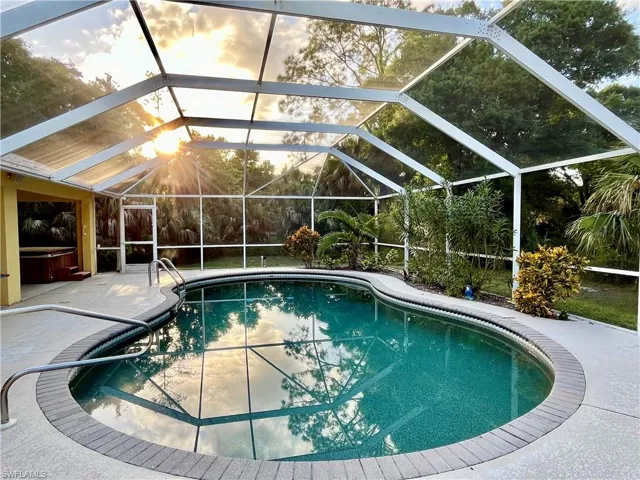 Brand new roof! Opportunity for immediate residency. Beautiful single family residence, located in Weber Woods Estates and ready for your own personal touches and transformation! 2.5 acres of luscious property surrounded by live oak trees, house set back for your privacy, and a paved round about driveway for your ease. This spacious and well maintained house complete with 4 bedrooms, 3 baths, 2 car garage, features a living room, family room, formal dining room, breakfast room, and French doors leading to an expansive screened-in lanai overlooking a sparkling pool with a large deck perfect for sunbathing in the all-year-round sunshine weather! The exterior of the house has a deep and wide backyard to provide many opportunities. The included detached utility shed/pump house is ideal for storage or smaller workshop needs. No HOA! Conveniently located a short distance from the top rated schools, dining, hospitals, fire station, shopping, Naples finest white sandy beaches, the Naples Pier, and thriving Olde Naples. This property offers the best in family country living. No flood insurance required!