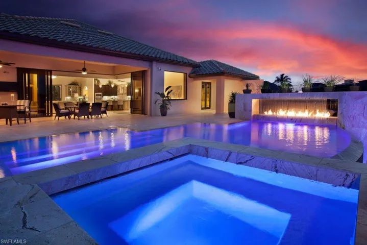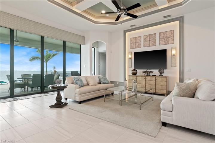 400k Price Improvement!! Experience waterfront luxury living in Cape Coral along the Caloosahatchee River. This exquisite masterpiece is Aubuchon-built, featuring the highly coveted ‘Mandolin’ model. Step inside to discover a turnkey interior, seamlessly blending elegance with contemporary design. This residence offers three beds, three baths, a den, heated pool with a captivating lanai fireplace. Situated on a deep lot and meticulously constructed with 101 pilings, it ensures a settling-free living experience, elevating your home to an impressive 11 feet. Car enthusiasts, the dream garage boasts a spacious 3-car capacity with an additional 7 feet in length and extra-tall garage doors. The kitchen showcases granite countertops, stainless steel appliances, 2 A/C units, a 500-gallon propane tank, and a stunning summer kitchen. Impact-resistant windows and electric shutters grace the back lanai, while a mesmerizing negative-edge pool represents a $200,000 investment. Seamless integration between indoor and outdoor spaces, accentuated by expansive windows, ensures that breathtaking views are celebrated from every vantage point. Immerse yourself in an unmatched waterfront lifestyle.