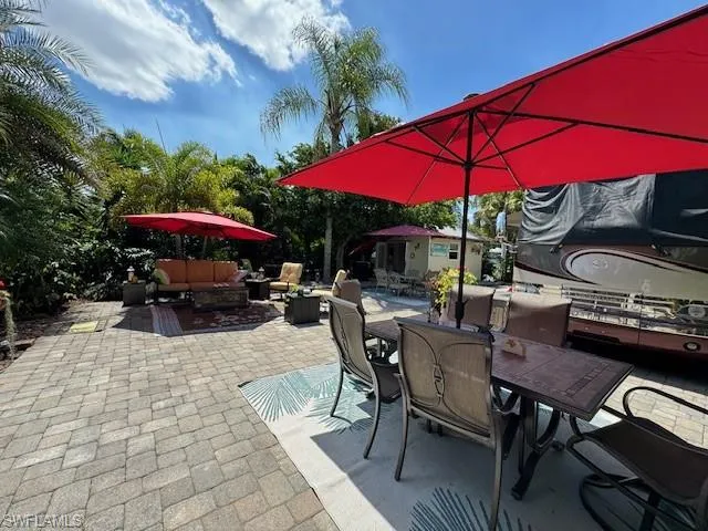 Lot 24 East-Facing Waterfront Gem in RiverBend. This is an incredibly rare opportunity to own a waterfront lot with breathtaking views of both Welcome Lake and Turtle Lake, each with a beautiful fountain. This pull-in lot features pavers and it is surrounded by lush, mature landscaping, providing both privacy and an abundance of shade beneath the towering trees.The spacious 11′ x 17′ coach house offers endless possibilities, whether you envision it as a private office space, a cozy sitting and dining area, or a welcoming guest retreat. With its kitchenette, washer and dryer, and efficient climate control, it provides both comfort and functionality to suit your needs. It features a well-appointed kitchenette, a convenient washer and dryer, and a shower with instant on-demand hot water for added comfort. A cleverly hidden mini-fridge, tucked behind framed artwork, adds a unique touch of style and functionality.. There is ample space for a large sofa or dining table, making it a versatile retreat. The elegant banyan tree provides a canopy of shade during the day, creating the perfect spot to lounge and unwind in the cool, dappled light. As evening falls, the space transforms into a magical setting for dining under the stars, where the warm tropical breeze and serene surroundings make every night feel like a getaway. Please note: Some personal property in photos will not convey with the purchase. Experience the Best of RiverBend. RiverBend is more than just a luxury motorcoach resort—it’s a true paradise for outdoor enthusiasts and those who love an active, social lifestyle. The community is set among lush tropical landscaping with majestic, mature trees that provide both beauty and shade, creating a serene and picturesque environment. At the heart of RiverBend is the lively poolside cabana bar, a favorite gathering spot where residents come together to unwind, share stories, and enjoy delicious drinks in a relaxed, island-style atmosphere. Whether you’re sipping a cocktail with friends or taking a refreshing dip in the resort-style pool and hot tubs, there’s always fun to be had. The amenities here are second to none, including a spacious clubhouse, putting green, bocce, shuffleboard, and horseshoes. Stay active with the state-of-the-art exercise room and eight pickleball courts, or enjoy unique activities like the R/C racetrack, R/C boating club, and the charming hobby train under the oaks. A private boat ramp provides direct access to the scenic Caloosahatchee River, perfect for boaters looking to explore the waterways. RiverBend is a welcoming, pet-friendly, golf cart community that offers an unparalleled lifestyle filled with recreation, relaxation, and lasting friendships.This is a must-see property in one of Florida’s most sought-after luxury motorcoach communities.
