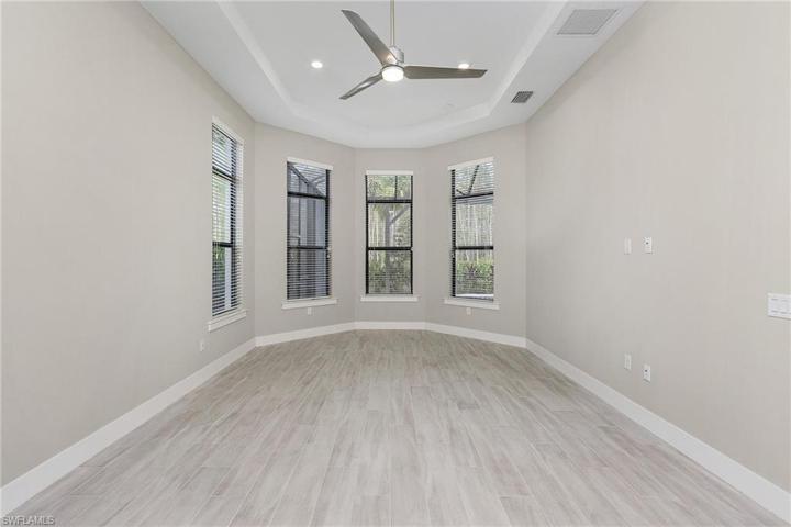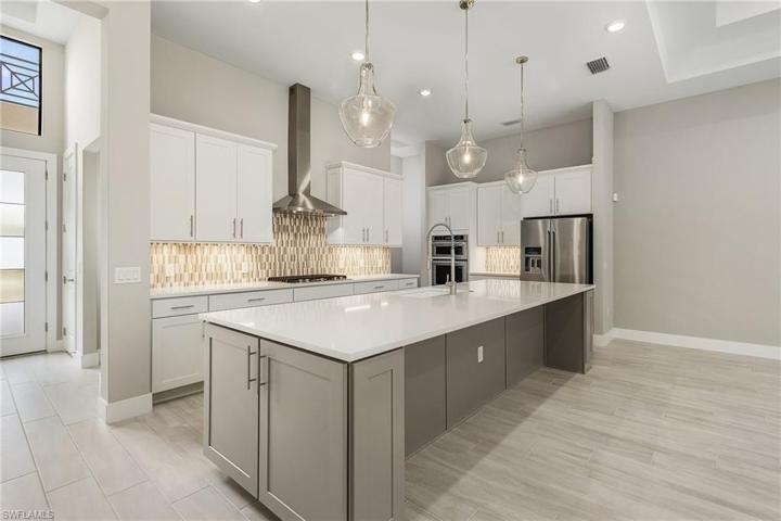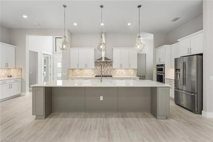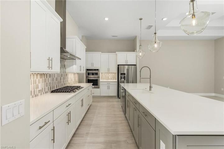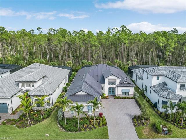Welcome to Ardena, where elegance meets convenience in one of North Naples’ newest gated communities. This exclusive 3 Bed + Den, 3.5 Bath, 2,658 sqft, Saltwater Pool home presents an opportunity to live in a beautifully designed, opulent residence that offers the very best of Naples living. Aventura floor plan by Pulte Homes boasts an open layout, making entertaining a breeze. Features Metal Roof, and High End Upgrades throughout. The large pro-series kitchen is a chef’s dream, complete with wood cabinets, quartz countertops, and top-of-the-line appliances. Whole house impact-resistant windows provide safety and energy efficiency, and a gas tankless water heater saves on energy costs. Smart house complete with WiFi garage door, Pool, Alarm and more. Situated just minutes from the cultural hub of Old Naples and surrounded by upscale dining and world-class shopping options, Ardena offers a lifestyle of unparalleled convenience and luxury. A short distance from some of SWFL’s top beaches, a haven for those seeking a vibrant, active lifestyle. Don’t miss this opportunity to make Ardena your new home and experience the epitome of Naples luxury living. No CDD. Low HOA. Matterport Tour.