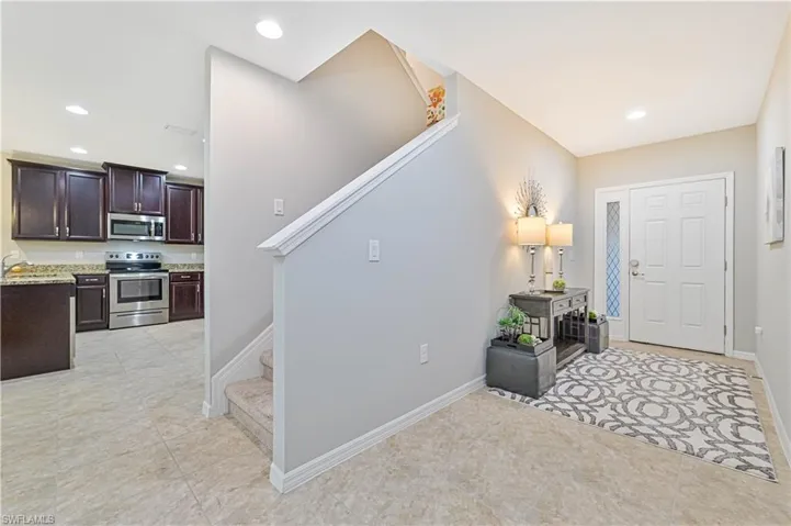 Beautiful lake views in this townhome in Lindsford community Ft Myers. Very spacious 1828 sq feet, 3 bed, 2.5 bath, with a 2 car garage. The kitchen, living, dining, and half bath is on the 1st floor and the 3 bedrooms, 2 full baths, and laundry is upstairs. This townhome is in mint condition and ready for its new owner. Lovely upgrades including; stainless appliances, 42 cabinets, granite countertops, whole house gutters, a large screened in lanai, and extended pavers overlooking the lake. Lindsford community has a gated entrance, community pool, basketball, and is conveniently located in central fort myers close to RSW airport, Historic downtown, shopping, and restaurants. No flood insurance is required and its maintenance free as lawn care is included in the very low HOA fees. Schedule your showing today!
