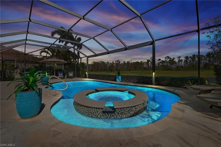 Recent upgrades include a new HVAC system with 10-year transferable warranty (2025), new pool heater, controller, and pump (2024), new washing machine (2024), lanai lighting, surround sound wiring, plantation shutters, and hurricane protection with electric Kevlar roll-down shutters and accordion shutters. No flood insurance required.