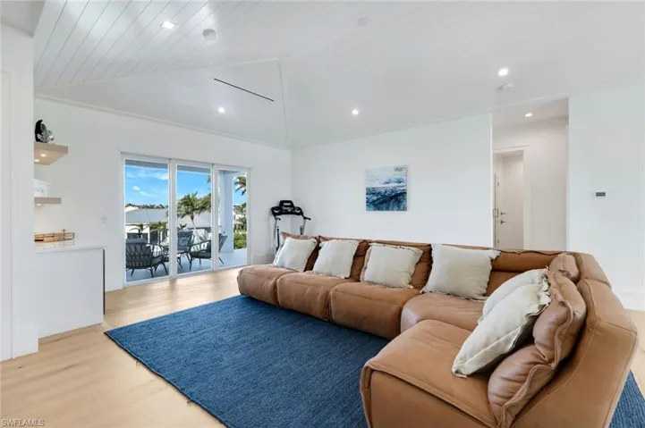 Delight in this exquisite waterfront estate in historic Old Marco Village, built in 2023 by Braun Builders. Set on .32 acres toward the end of a private cul-de-sac, this 5-bedroom, 4.5-bath designer home offers 160 feet of waterfront, an expansive dock, and direct Gulf access. Striking glass entry doors reveal a grand two-story foyer with wide water views, while wide-plank wood flooring and a modern bridge enhance the open-concept living spaces. Thoughtfully designed, this home showcases the finest fixtures, finishes and custom tile work, enhancing its luxury and sophistication. The chef’s kitchen boasts a dramatic center island, Wolf gas range, pot filler, 2 Sub Zero refrigerators, double dishwashers, hidden butler’s pantry (keeping the kitchen pristine), custom cabinetry and a garage-to-pantry grocery hatch. Retreat to your opulent primary suite showcasing serene water views, elegant, coffered ceilings, and a spa-inspired all marble bath with custom lighting and mirrors; featuring a soaking tub, expansive dual shower, dual vanities, and bespoke his-and-hers closets. A private study with library shelving and sliding ladder overlooks the dock. Upstairs, a loft-style Great Room with a coffee bar and wine fridge offers a retreat for entertainment. Guests and family will appreciate the second primary ensuite and a charming bunk room that share a sprawling waterfront lanai with breathtaking water views, while the guest room and fitness room, showcase private lanais. All furnishings included except Primary bedroom. The fenced rear yard is an entertainer’s paradise, with a 93-foot pool deck, infinity-edge pool with shallow beach entry, and spa, plus a 60-ft covered lanai with plenty of space to relax and use the outdoor kitchen with built-in gas grill. The 124-ft dock system includes a boat slip with 16,000lb lift, for up to an 80-ft boat, jet ski lifts on a 7,000lb platform, power, water, and a firepit seating area overlooking Collier Bay for serene waterfront evenings. Impact windows and doors, remote blinds for light control, and automatic screens and hurricane shutters provide effortless comfort and storm readiness at the touch of a button. Enjoy the 3-car garage with 8,000lb lift, 22KW-200amp whole house generator and French drain system that ensure function and luxury in one of Marco Island’s most coveted settings. This home epitomizes refined coastal elegance at its finest.