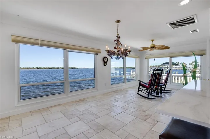 Absolutely stunning property! From the polished travertine throughout the entire home, modern upscale furniture-grade cabinets (Thomasville) with an incredible amount of storage, to the unmatched phenomenal sunsets every night—from your pristine pool if you’d like! THIS is the island home we dream of! The kitchen boasts gorgeous, white Cambria quartz, including a huge island with spectacular waterfall design that’s seen the moment you walk in the door. All appliances are new GE Profile and the microwave utilizes Advantium technology making it dual purpose as a second wall oven as well. Bathrooms have been beautifully upgraded and all windows feature custom blinds, some electric. The resort-style pool has an integrated spa at one end and an integrated water feature at the other, with unobstructed views across the bay! The entire home is concrete block and secure with impact windows and doors, and would be a perfect candidate for flood panels—-the home flooded minimally and was professionally remediated. Solar panels allow for year around average electric bills of $110 with credits enrolled in the LCEC Net Metering Program. New AC and an additional mini-split system in the garage expand your ability to “project through all seasons” as well in the oversized garage. Priced to sell, this home is a must-see.