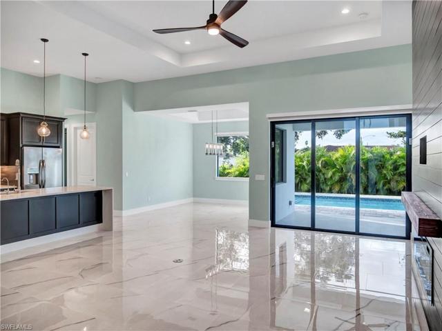 Your new immaculate residence is ready!! in the tranquil NE Cape Coral, Come see this newly completed pool home! Includes: LED lighting, High-end cabinets, washer and dryer, beautiful electric fireplace, tile floors, hurricane impact-rated windows, kitchen hood, overside lot, corner, fence, and natural fence with palms to create your private paradise. With room to build your RV garage and outdoor kitchen.