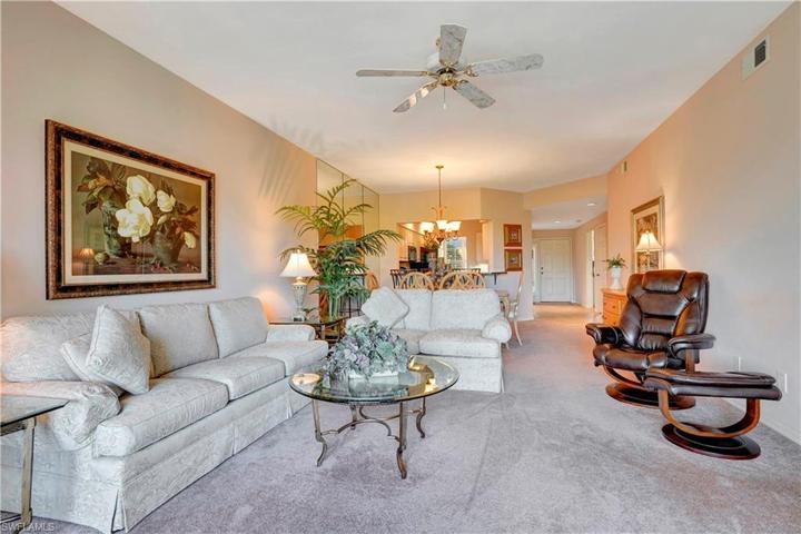This meticulously crafted first-floor, 2+den 2 bath condo offering unparalleled luxury, breathtaking golf course views, & a lifestyle brimming with amenities. Experience the best of Pelican Landing, at the lowest price! The open-concept living space welcomes you with abundant natural light. The living room seamlessly flows into the dining area, making it ideal for entertaining guests or enjoying quiet evenings at home. The kitchen offers sleek granite countertops, ample storage space, & a convenient breakfast bar. The flex space is perfect for a home office, media room, or extra guest bedroom. With the added convenience of a Murphy bed. The large owners suite offers serene views of the golf course, and ensuite bathroom, complete with a spa-like soaking tub, walk-in shower, and dual vanity. Step outside to your private screened lanai, where panoramic views of the golf course await. Sip your morning coffee or indulge in evening beverages. Pelican Landing offers a wealth of amenities, including a championship golf course, tennis courts, fitness center, community pool, private beach, sailing, pickleball and more. Engage in an active lifestyle or simply relax in the sun-soaked ambiance of this prestigious community.