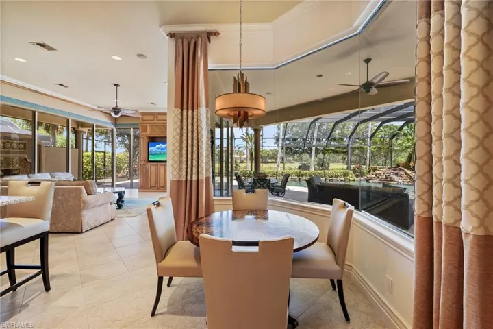 Nestled on nearly an acre in one of the most exclusive enclaves within Shadow Wood at The Brooks, this Harbourside Custom Homes Villiano II former model redefines timeless elegance and privacy. The lush corner lot is framed by mature oaks, royal palms, and manicured green spaces, creating a tranquil setting surrounded by other impressive estate homes. Step inside and you’ll find over 4,295 square feet of bright, open living space with four bedrooms, a den, and a seamless indoor-outdoor flow perfect for entertaining. The main level features a luxurious owner’s suite with dual custom closets, an inviting spa-like bath, and direct access to the outdoor living area. Two spacious en suite guest bedrooms are privately tucked away, while a large laundry room sits conveniently next to the oversized three-car garage with tall ceilings for added storage. The formal dining and living rooms create a grand first impression, while the heart of the home—an open kitchen and family room—features fully pocketing sliders that open up entirely to the stunning lanai. Upstairs, a private bonus level offers a wet bar, en suite guest room, and flexible living space with a balcony showcasing breathtaking lake and preserve views. Crafted with care by an award-winning interior designer, the home features intricate ceiling details, crown molding, elegant baseboards, curated paint, wall coverings, designer lighting, and luxurious carpeting throughout. Outside, the 2,000-square-foot lanai invites you to relax or entertain with a panoramic screen enclosure, travertine decking, resort-style pool with waterfall and sun shelf, a gas fireplace, and a summer kitchen with grill and bar. North-east exposure ensures the perfect mix of sun and shade, while the peaceful lake views and surrounding wildlife deliver a serene Florida experience. Though full golf membership is not included, the community offers multiple membership options tailored to different lifestyles, and the amenities, landscape, and upkeep are simply unmatched. If you’re looking for a residence that blends elegance, comfort, and exceptional outdoor living, this is truly a place to call home.