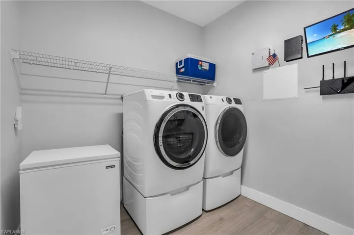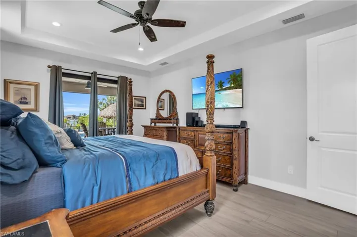Step outside to your personal oasis! The saltwater pool features a stunning waterfall spa, LED lights, and mesmerizing water effects. Pool designed entertainment with a sundeck that can hold 6 chairs, and a deep end complete with a drink ledge. Relax under the tiki hut, gather around the fire pit, or simply soak in the serene canal views.