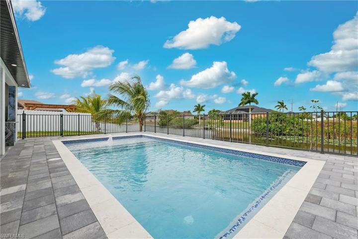 Beautiful Waterfront this spectacular POOL HOME located in the desirable area of Cape Coral ,The open concept offers 1910 sq.ft of fabulous living area, tray ceilings, HURRICANE IMPACT DOORS & WINDOWS, custom contemporary cabinetry, quartz countertops, zebra blinds with privacy . TILE THROUGHOUT! . When you view the pictures you will see all the upgrades this new home has to offer. 5 1/4″base & 3 1/4″casing. 8 ft., fabulous picture window for unobstructed water views. AMAZING LANDSCAPING! . Spacious family room with feature wall & fireplace. East Exposure for sunsets & afternoon sunlight , BOATERS very close to Matlacha for wet & dry boat storage, boat rentals, restaurants, dining, events. Just enough room to start a family or to retire to with all the extra storage!