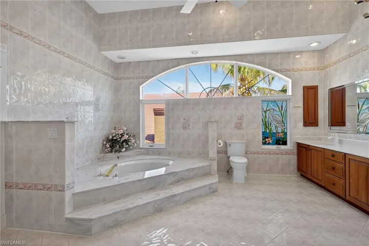 Custom designed and built by its original owners, this stately home showcases timeless architecture and refined craftsmanship throughout it’s 4 bedrooms, and 6 bathrooms. With over 114 windows, the interior is bathed in natural light, highlighting the home’s grand scale and thoughtfully curated details. A custom tiled roof crowns the residence, complementing its sophisticated exterior presence. A defining feature of this home is the custom poured marble staircase a stunning architectural centerpiece, immediately setting the luxurious tone upon entry.