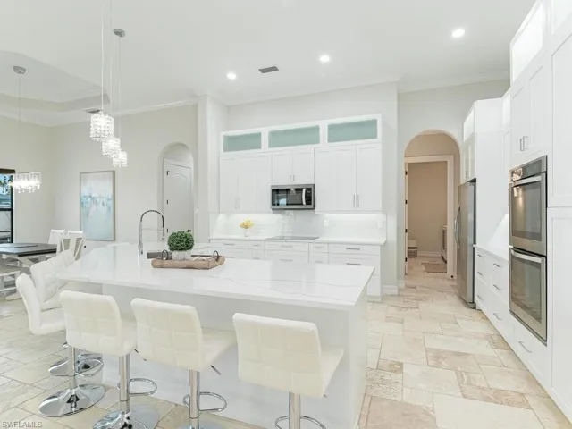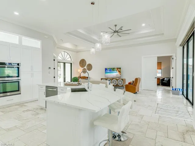 Welcome to this Marco Island Gem, Priced to sell ! This 2013 built tropical retreat will wow you immediately, and is move in ready. New exterior paint welcomes you into this sprawling hurricane window and doors, 4 bedroom, 3 full bathrooms, brand new kitchen, custom built and spacious home. New white shaker style cabinets with luxurious quartz counters. All new spectacular kitchen and living room lighting. There is a built-in pantry system in the newly designed state of the art kitchen! The quartz keeps flowing into the new laundry room with brand new cabinets, counters, and a built in ice maker for all your entertaining needs. The oversized dock allows for not only daytime sunbathing but 2 lift systems for all your outdoor toys! Brand new tropical landscape just installed with all new outdoor lighting. The quick trip to the gulf makes this home extremely desirable for all boating enthusiasts. Property is located in a central area close to libraries, exercise facilities, and the famous white sandy beaches of Marco island!