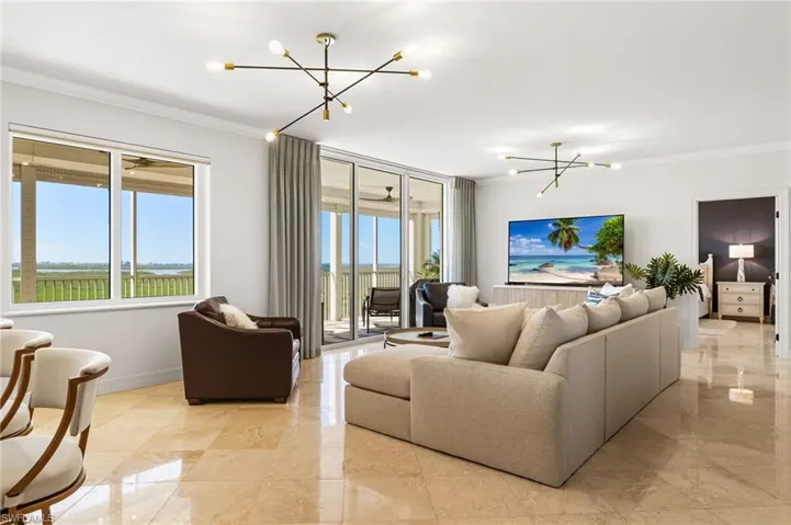 Prepare to be WOWED when entering this magnificently updated 9th floor condo in Jasmine Bay within prestigious West Bay Club. What truly sets West Bay Club apart is value — nearly every amenity in the community is included in the HOA fees, unlike most area communities. Enjoy the private Beach Club with full service restaurant, the renovated Bay House with resort pool, Aqua Cafe, state-of-the-art fitness center, along with River Park, boating access, pickleball, tennis, bocce, dog parks & more — all included. Golf is the only membership offered separately. This condo offers an unparalleled blend of luxury, modern design, and functionality. Recent upgrades include a brand-new chef’s kitchen with custom cabinets, stylish backsplash, new appliances, quartz countertops, and hooded range. This residence boasts meticulous attention to detail with premium finishes and thoughtful touches throughout. Enjoy breathtaking views and stunning sunsets over Estero Bay, and the Gulf of America through floor-to-ceiling sliding glass doors in the great room and master suite. Offering 3 spacious bedrooms and 3 bathrooms, two private balconies, and an expansive open floor plan, this home delivers a profound sense of spacious luxury. The residence features custom interior appointments like marble flooring, neutral finishes, tray ceilings, and electric hurricane shutters. Jasmine Bay amenities include a shared infinity edge pool, fitness room, gas grills, hot tub, cabanas and 4 private guest suites that are perfect overflow space for visiting family and friends. Optional private memberships are available for the 18-hole Pete & P.B. Dye golf course and clubhouse.