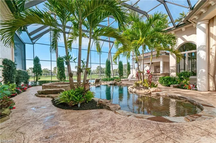 Welcome to luxury living at its finest! This stunning home offers an unparalleled blend of elegance and comfort. Nestled in the coveted neighborhood of Terrabella within Pelican Marsh, and boasts refined finishes and meticulous attention to detail. Upon entering, you’ll be greeted by soaring vaulted ceilings that create a sense of grandeur and spaciousness. The interior showcases custom cabinetry, adding both style and functionality. Gleaming wood and tile flooring throughout exude timeless charm and easy maintenance. Retreat to the luxurious main floor primary suite, complete with a spa-like ensuite bathroom, walk-in closets and French doors to access a resort style lanai. Three additional bedrooms offer comfort and privacy for family and guests, while the den provides the ideal space for a home office or library. Step outside to the expansive outdoor lanai area, where lush landscaping, pool, spa, and outdoor kitchen creates a serene oasis for relaxation and alfresco dining. This home effortlessly caters to modern living needs and offers the perfect blend of tranquility and convenience. A short 25 minute drive to the Airport and close to the beach, shopping and fabulous dining.