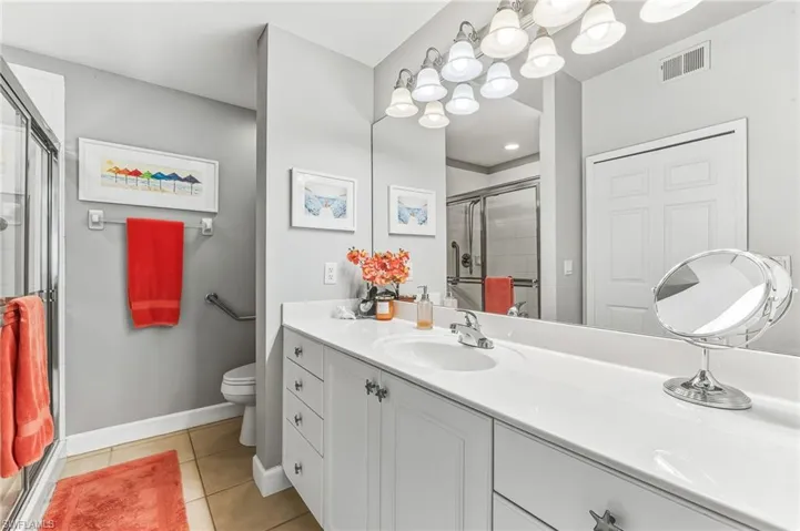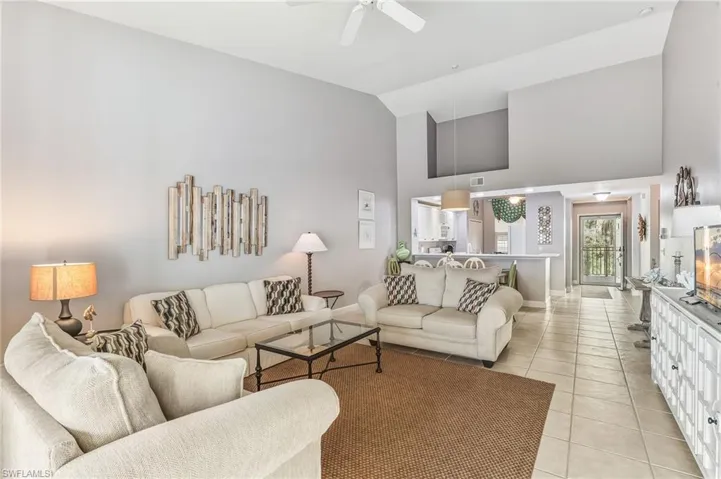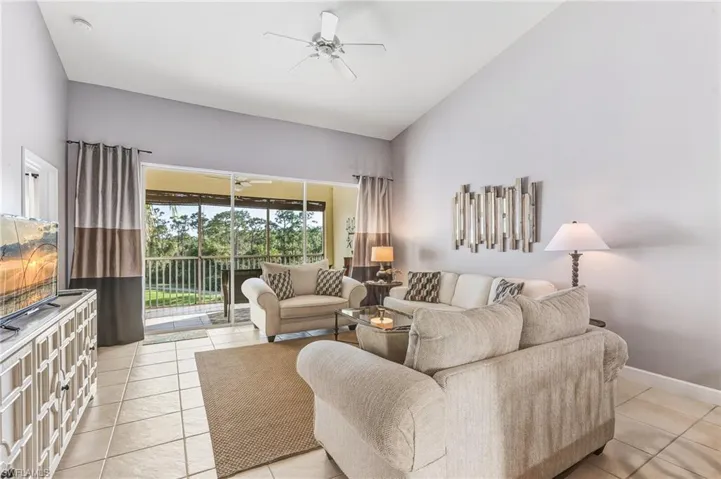 Pelican Preserve, Top-Floor Condo with Breathtaking Views: Welcome to the Florida lifestyle! This top-floor, in Pelican Preserve is an absolute gem. Meticulously maintained and sold completely turnkey furnished, this residence is ready for you to move in and start enjoying the good life. Step inside and be captivated by the stunning views of the golf course and a tranquil lake. The condo features beautiful tile flooring throughout and tasteful designer touches. The kitchen boasts white cabinets with solid-surface countertops, perfect for whipping up your favorite meals. Natural light streams in through elegant Plantation shutters and custom window treatments, creating a bright and inviting atmosphere. The large screened lanai is the perfect spot to unwind, sip your morning coffee, and watch the local wildlife or take in the spectacular sunsets shimmering over the water. This two-bedroom, two-bathroom unit also includes a dedicated, secure storage space for your bikes and golf clubs. Just a short walk from the award-winning Town Center, you’ll have easy access to the vast array of amenities Pelican Preserve has to offer. The community features a 27-hole golf course (optional membership), a state-of-the-art fitness center with personal trainers, indoor and outdoor pools, tennis and pickleball courts, saunas, steam rooms, and a woodworking shop—just to name a few! Located just ten minutes from the airport and a short drive to Florida’s beautiful beaches, this home is also conveniently close to shopping, dining, and hospitals. This desirable unit won’t last long, so don’t miss your chance to experience the very best of Pelican Preserve.