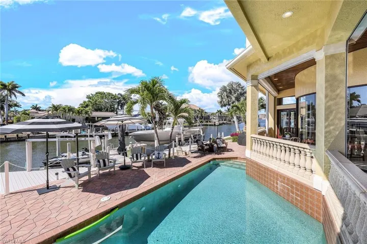Magnificent two-story custom home with gorgeous views of Smokehouse Bay and Esplanade. A boater’s dream with 158 feet of spectacular direct waterfront from your large dock with 3 three lifts that can accommodate a large boat. As you enter this spectacular home, you are greeted by a beautiful foyer, sitting area, full bar, formal dining room, tray and coffered ceilings, and stunning custom woodwork throughout. Gourmet chef’s dream kitchen with double oven, six-burner gas stove, double refrigerator, built-in cappuccino machine, mahogany cabinets, breakfast bar and morning room. Enjoy the captivating views from the inviting family room with gas fireplace. A primary suite retreat, den and half-bath are on the first floor. The second floor comes with three additional bedrooms, two full baths, loft, wet bar, private balconies, and separate sundeck to soak in the mesmerizing views and enjoy the glorious sunsets. Watch the dolphins play or relax from your spacious open lanai with gas, electric and solar-heated pool, additional half-bath and electric shutters. Exceptional level of craftsmanship, top-quality finishes, travertine marble and wood floors, Pella windows, four-car garage and circular drive. In the desirable Tigertail Beach area and close to everything Marco Island has to offer. Live the possibilities today!