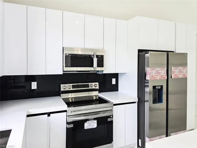 One or more photo(s) has been virtually staged, AI generated or rendered. Beautiful new construction located in an excellent half acre of Lehigh Acres, close to many stores, gas stations, restaurants and more. Open floor plan, metal impact double entry doors, as well as impact windows and back sliding door, sprinkles system, 10′ celling with crown molding, 8′ Interior doors and white porcelain tile flooring 32X32 throughout the entire home. Beautiful kitchen with white quartz countertop with an island, wooden 42″ cabinets with crown and light molding, stainless still appliances and kitchen hood. Also has walking closet in the master bath, double sink, shower panel tower system rain and waterfall massage jet sprayer. Both showers with glass doors and panels. A/C with returns in each room for better A/C circulation. Ceiling fans in each bedroom and the living room. Garage is paining with an impact lateral garage door. This home comes equipped with a complete Smart Home package, offering enhanced security, comfort, and seamless control throughout the property. The system includes:- HD IP Security Camera System for high-definition monitoring, – Ring Video Doorbell with real-time alerts, – Smart Thermostat for efficient climate control, – Amazon Hub with integrated display for centralized management, The smart ecosystem allows you to create custom routines such as: – Automatically displaying the doorbell camera feed on the screen when someone rings – Adjusting the air conditioning temperature automatically based on your preferences. Using Alexa voice commands, including: “Alexa, turn up the air conditioning”, “Alexa, show me the Front Door”. The system is also fully scalable, allowing you to add additional Alexa-compatible devices in the future—such as smart locks, garage door openers, smart lighting, and more. THIS HOME WILL GIVES YOU THE BEST OF BOTH WORLDS! PEACE AND TRANQUILITY YET NEARBY THE CITY! YOU DON’T WANT TO MISS THIS OPPORTUNITY!!. YOU CAN’T GO WRONG!! SCHEDULE A SHOWING TODAY!!.