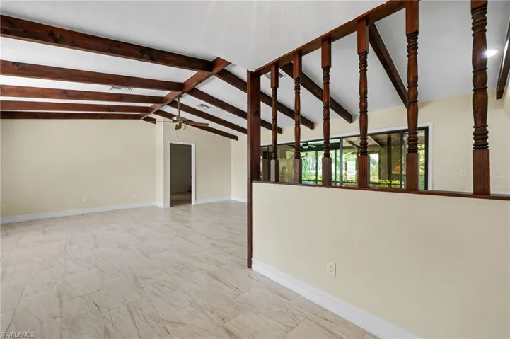 NO HURRICANE DAMAGE! NO FLOODING! Did not even lose power! CONTEMPORARY COASTAL BEACH HOME with TONS OF CHARACTER in this QUAINT RESIDENTIAL NEIGHBORHOOD of Bonita. 1 mile to the nearest BOAT RAMP! NO HOA! You will love the front courtyard, bay window, EXPOSED BEAMS and huge lanai to enjoy outdoor entertaining space this season! HOME, SWEET HOME is ready for its new owner and comes complete with the finest and most up to date building products including ceramic tile throughout, wood cabinets, engineered quartz, moen stone sink, black fixtures and a relaxing palette of fresh paint! Your new home is in the perfect location between the festivities of DOWNTOWN BONITA and the GULF BEACHES — X FLOOD ZONE means no flood insurance is required! With over 1500 sqft you will love this SPLIT FLOOR PLAN layout with a defined galley kitchen! NEW ROOF 2023! NEW AC 2024! Central water and sewer with a separate well for irrigation. New sprinkler equipment and well equip was repiped recently with 4″ PCV. Roll down hurricane protection along the back of the home and plenty of room for your future lap pool. Large, clean EXPOXY garage! Original building plans available, structural warranty included and recent wind mitigation and 4 point inspection available.This is THE ONE you have been waiting for and wishing for. This home is a MUST SEE IN PERSON!