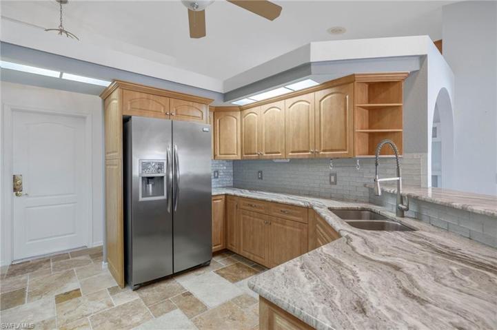 Welcome to your 3 Bed, 2 Bath, 2 Car Garage, Gulf Access, Pool Dream Home. This stunning single-family home boasts everything you could ever desire. Open floor plan with Cathedral Ceiling in the main Living area. Granite Counters and Stainless Steel appliances in the kitchen. The Tile Roof ensures durability and longevity, The Master Suite offers custom mahogany shelving in both his and her walk-in closets adds a touch of elegance and sophistication. Master Bath offers Soaking Tub, Large Shower, Beautifully updated His & Her Vanities. Cozy up by the fireplace in the evenings. Plantation Shutters provide privacy but also enhance the overall aesthetic appeal of the home.