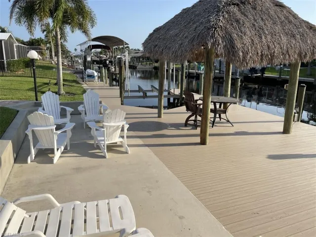 Boaters Dream, only 5 Minutes to open water boating! 3 br 2 ba 2 car, plus den pool home is on a western exposure 120 ft triple waterfront lot located in the desirable Cape Coral Yacht Club area with direct sailboat access. All new features include new 2′ x 4′ tile thru out, premium stainless steel appliances incl. wine cooler, solid doors, newer shingle roof, newer heated pool, new pool enclosure. Two boat lifts, 13,000lbs covered boat lift, plus a 7k boat lift with 12 x 12 tiki hut on with composite decking that spans the entire 120′ of seawall! Sea wall is new in 2012 with a dock patio! Plumbing supply updated with PEX and drains are updated to current standard of PVC. Home has a expansive private and completely fenced in yard for the dogs. This is a must-see home in a beautiful neighborhood, close to Cape Coral Downtown and walking distance to Cape Corals only Beach! Flood insurance is both affordable and transferable! This home checks all the boxes!