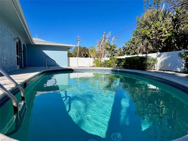 SUPER CLEAN! New roof with Third Nail upgrade, new HVAC system, all impact windows and doors, PEX plumbing, updated electrical service, Sherwin Williams Dockside Blue exterior paint, beautiful terrazzo floors and a huge fenced yard with a sparkling pool… 690 Purdy is ready for your interior design! The spacious screened lanai overlooks a lovely pond with waterfalls, creating a calming, relaxing atmosphere. Walk, bike or drive two miles in either direction to arrive at one of Sanibel’s spectacular beaches. This home is fondly called “The Center of Paradise” by its owner and guests. It is just steps away from “downtown” Sanibel! Shops, groceries, restaurants, walking trails, the community center, playground, Big Arts, the Farmer’s Market, the library, and so much more are so close! Enjoy comfortable Florida living with your landscaped private pool area just outside your door and the amenities of the island just down the street. It is truly Island Living when you never need a car! Make this your own center of paradise!